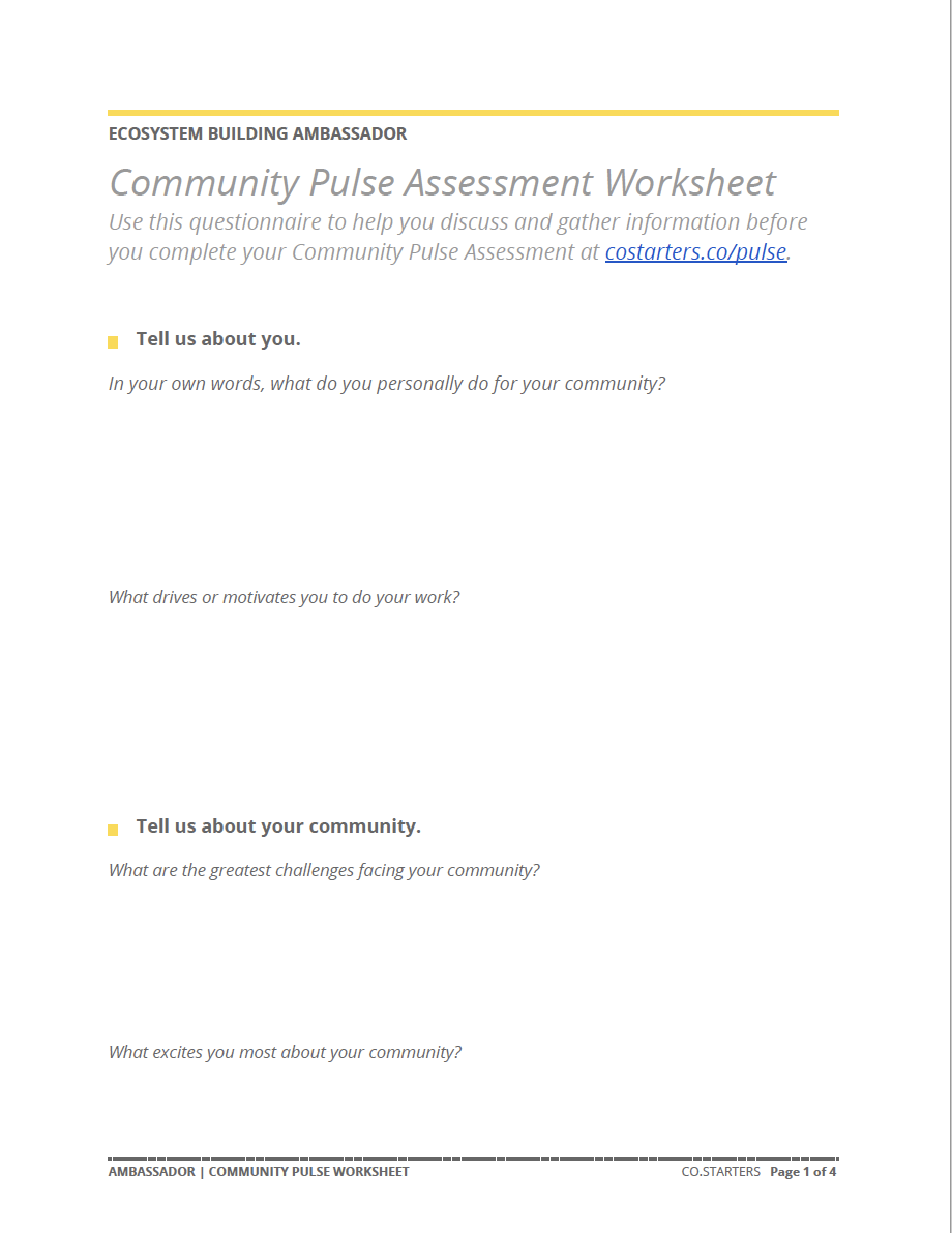 Download this tool and keep it handy to help you answer several sections of the assessment.